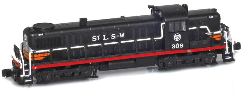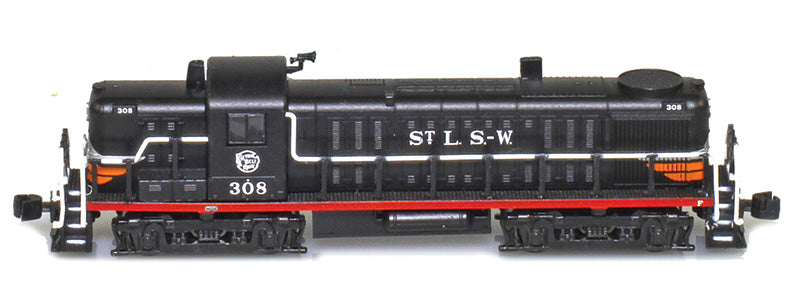 Prototype details include: Phase I body, body mounted number boards, ALCO AAR trucks, dual bulb headlight, three chime airhorn, lengthwise smokestack and 1400 gallon fuel tank. Road numbers: 308 & 309